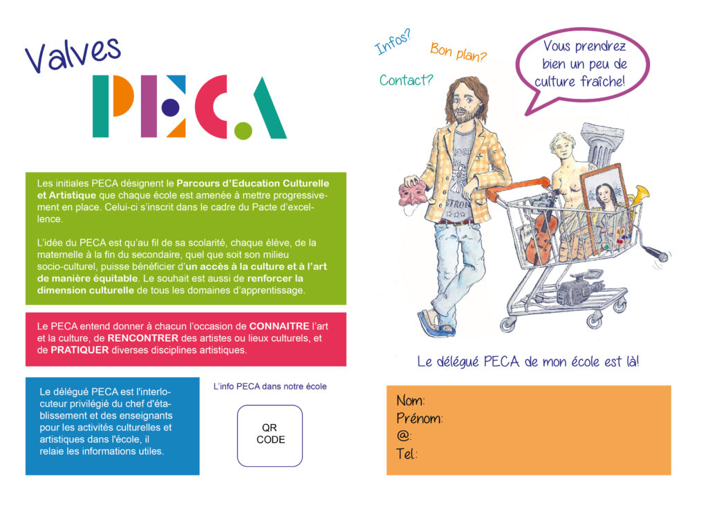 Le délégué PECA répercute dans l’école des informations concernant l’offre culturelle, en collaboration avec d’autres acteurs du PECA (référents culturels, opérateurs, référents scolaires…)